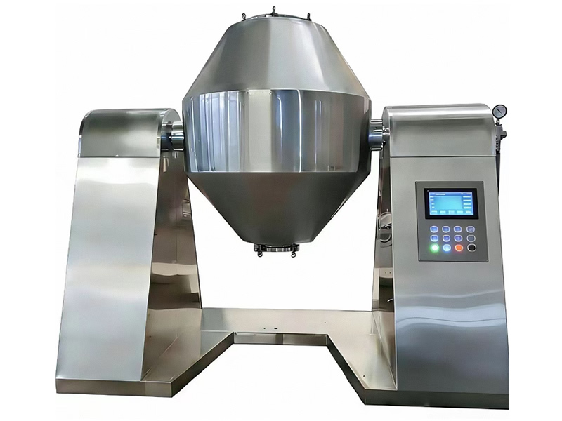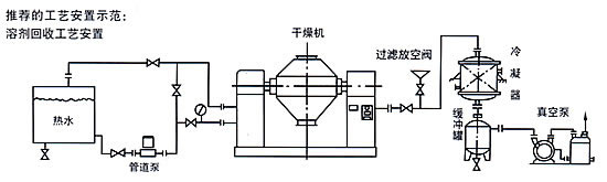 回转真空干燥机在密闭的夹层中通入热能源(如热水、低压蒸汽或导热油),热量经内壁传给被干燥物料。在动力驱动下,罐体作缓慢旋转,罐内物料不断地混合,从而达到强化干燥的目的。 物料处于真空状态,蒸汽压下降使物料表面的水份(溶剂)达到和状态而蒸发了,并由真空泵及时排出回收。物料内部的水份(溶剂)不断地向表面渗透、排出三个过程不断进行,物料在很短时间内达到干燥目的。